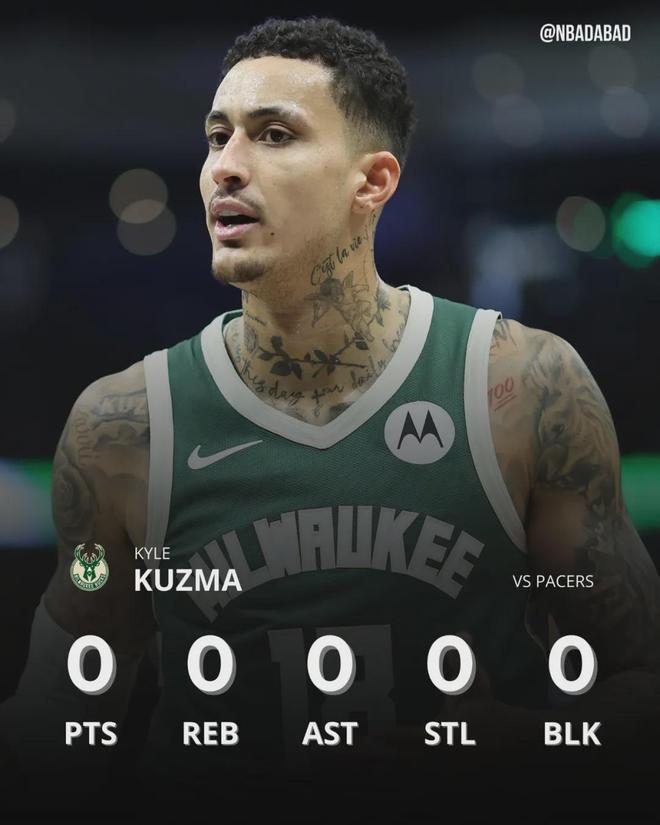北京时间11月16日,NBA常规赛:雄鹿95-119惨败给湖人。雄鹿前锋库兹马首发出战19分35秒,6投0中,三分5中0,罚球2中1,仅得1分1篮板1失误5犯规,正负值-17。连媒体都无奈了,赛后写道:师傅,你是做什么工作的?