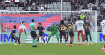 第92分钟,替补登场扮演中锋角色的阿劳霍打进了莱万多夫斯基的同款进球。