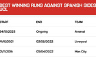 枪手官网展望下轮对马竞:对西甲球队6连胜,英超球队独一份